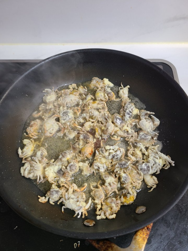 3. 게를 넣고 휘휘 저어서